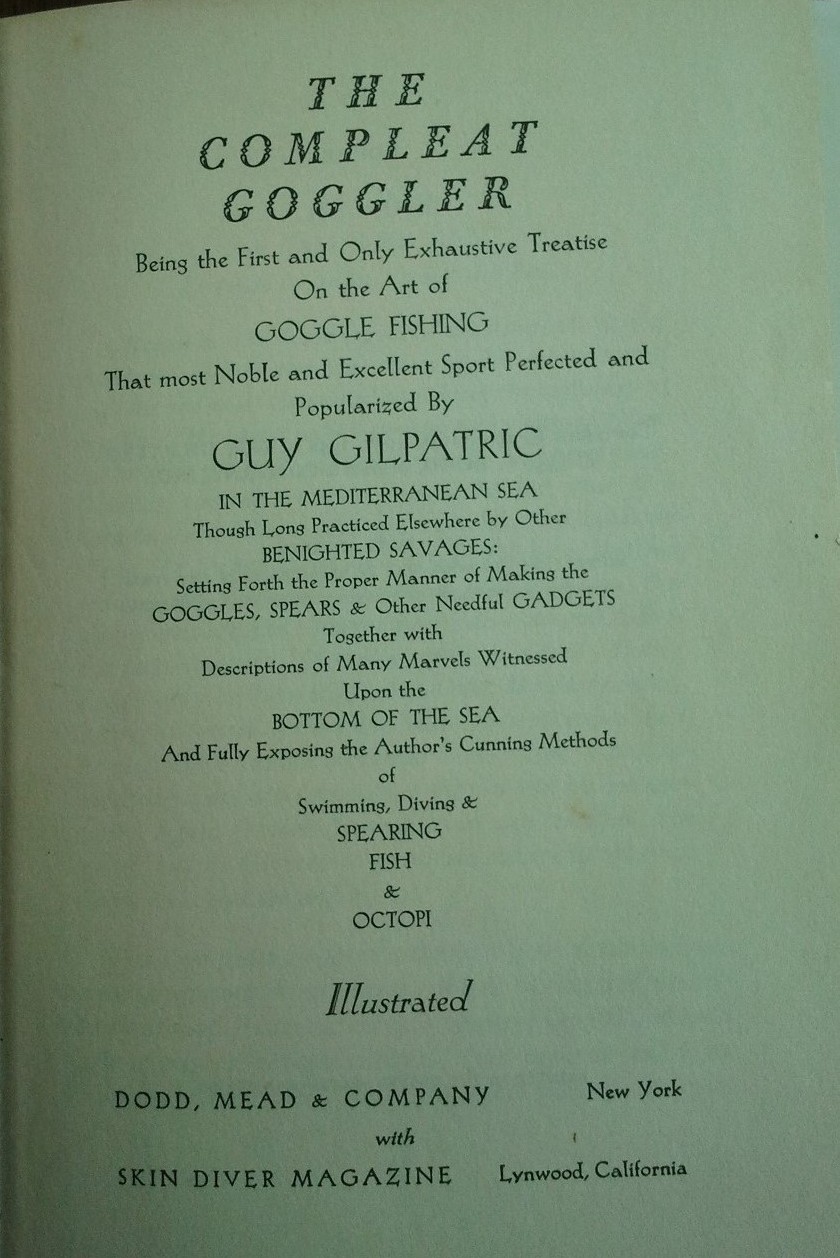 Written well before the advent of underwater film and television documentaries – and combining DIY advice for the would-be skin-diving enthusiast with stories of spear-fishing exploits along the French Mediterranean coastline – Gilpatric’s folksy humour and keen eye for fact rather than fiction helped stimulate interest in the new sport of ‘goggling’.