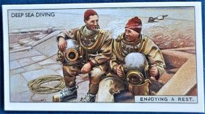 And the reason for the colour, red? Taking rest breaks from lengthy underwater tasks, divers would often elect to remain fully dressed – with the exception of the helmet – rather than go through the whole un-dressing, and subsequent dressing, procedures. Seated on the open decks of construction barges or pontoons during these tea-and-tobacco breaks, and weighed down by the corselet, breast weights and heavy boots and unable to quickly move out of harm’s way, the beanie acted as a red-for-danger signal flag to warn crane and derrick operators of the diver’s presence.