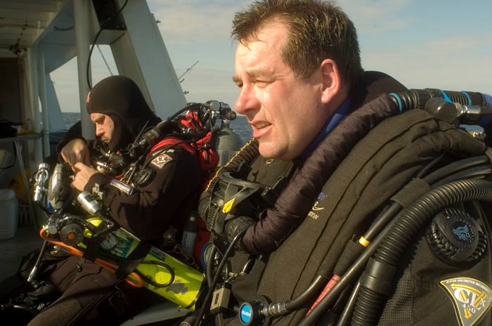 In August of 2005, ‘Shadow Divers’, John Chatterton – the first diver to use rebreather diving technology on the wreck of Titanic’s sister-ship, HMHS Britannic, sunk near the island of Kea, in Greece – and his long-time dive partner, Richie Kohler, put together an expedition to search for previously unseen pieces of RMS Titanic’s scattered wreckage.