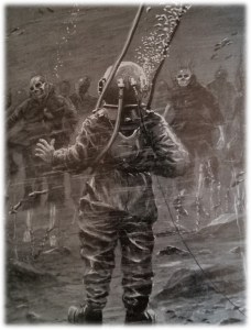 Responding to the pleas of a mother of one victim, who begged the Chief Diving officer for help in recovering the body of her son, one of the divers was duly briefed on what to look for. A few minutes after descending, the diver’s surface attendant received frantic signals on the life-line. Hauled quickly to the surface, and back on board the vessel, the terrified diver began babbling that he’d been surrounded by ghosts.