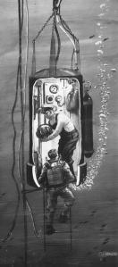(Mono Images of Submerged Decompression Chamber from, ‘Deep Diving And Submarine Operations’, by Robert H. Davis.)